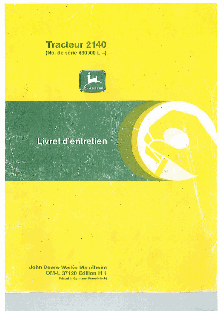Telecharger JOHN DEERE 2140 Mode emploi Français (129 Pages) 39.90 EUR