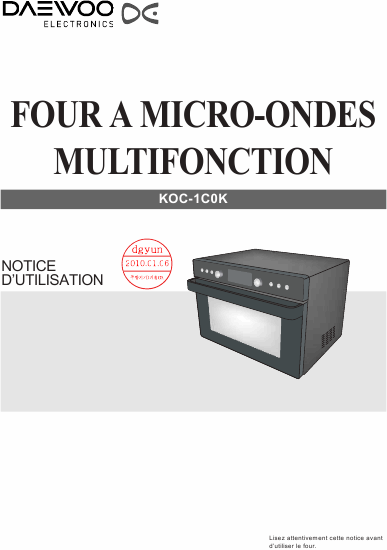 Baixar DAEWOO KOC-1C0K Instruções Francês (38 Pages) 15.90 EUR