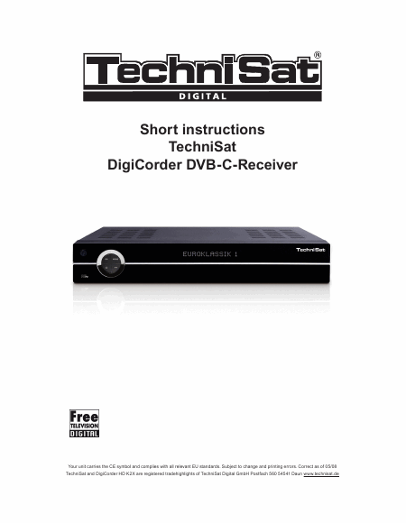 Download TECHNISAT Digicorder K2X Users Guide English (20 Pages) 15.90 EUR