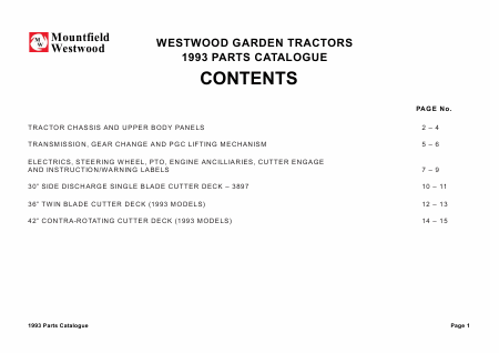 Descargar WESTWOOD Year 1993 Lista de piezas de repuesto Inglés (15 Páginas) 15.90 EUR