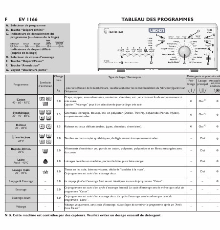 LADEN EV 1166 (EV1166) Instruções Francês