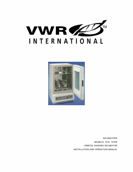 VWR 1575 Mode emploi Anglais