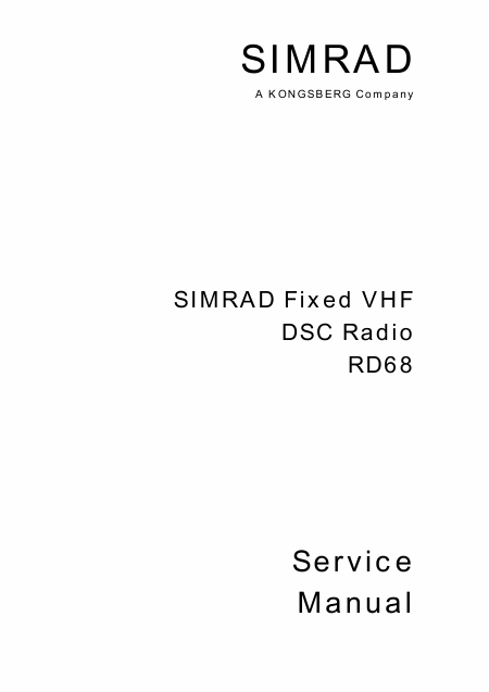 Telecharger SIMRAD RD68 Manuel de service Anglais (66 Pages) 15.90 EUR