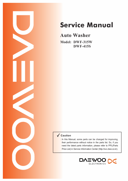 Telecharger DAEWOO DWF-415S Manuel de service Anglais (36 Pages) 15.90 EUR