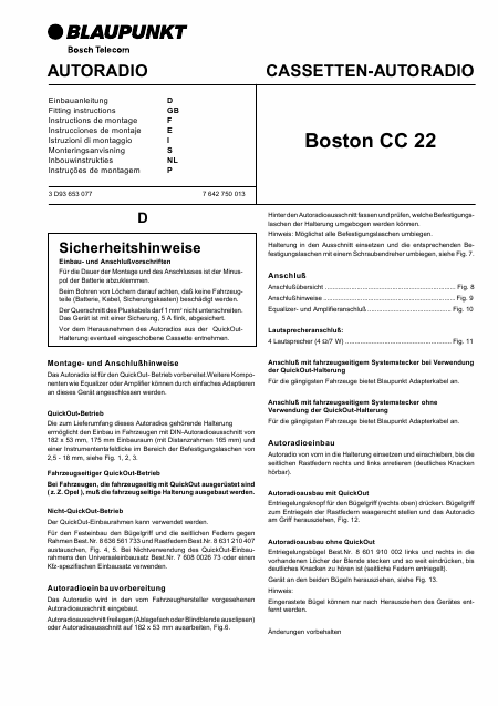 Download BLAUPUNKT Boston CC 22 Installationsanweisungen Spanisch (5 Seiten) 12.90 EUR