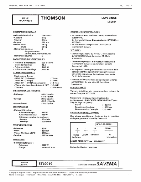 Download THOMSON L55S91 Schematics French (12 Pages) 39.90 EUR
