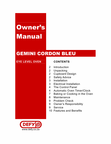 Scaricare DEFY Cordon Bleu Istruzione Inglese (10 Pagine) 12.90 EUR