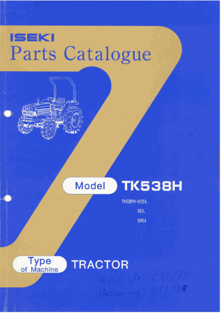 ISEKI TK538H Lista de peças Inglês