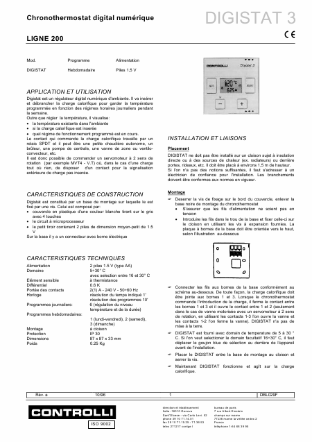 Download CONTROLLI Digistat 3 Installation Manual French (4 Pages) 12.90 EUR