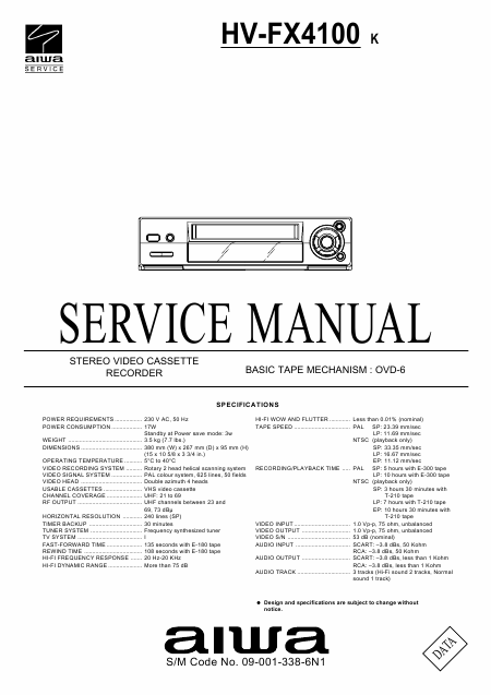 AIWA HV-FX4100K Manual de serviço Inglês