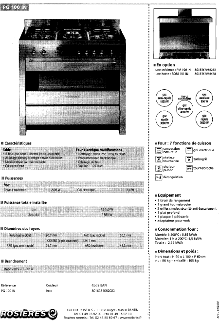 Baixar ROSIERES PG100IN Diagramas Francês (4 Pages) 15.90 EUR