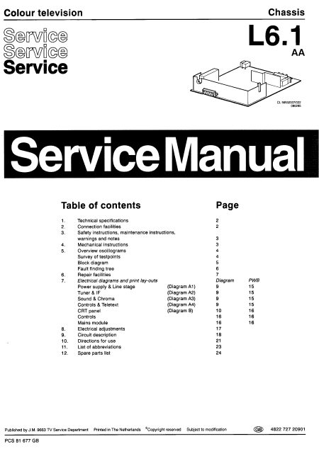 SCHNEIDER 37TB1252/19 Serviceanleitung Englisch