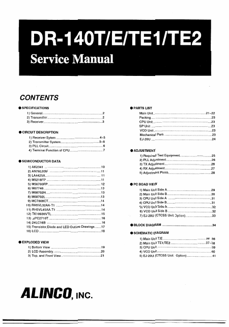 ALINCO DR-140T/E/TE1/TE2 Manual de serviço Inglês