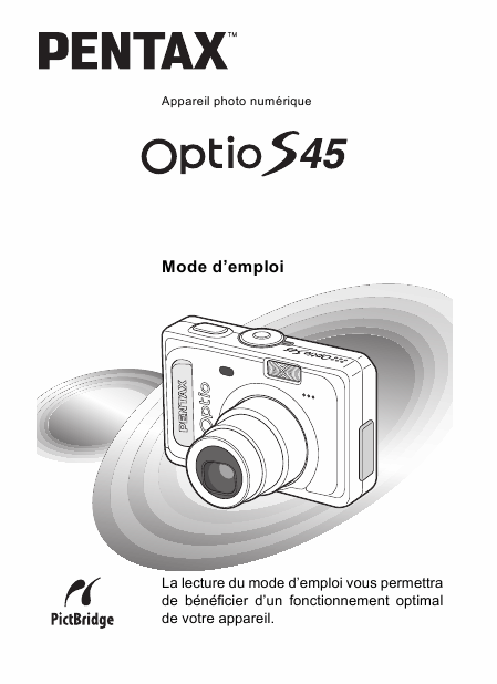 Telecharger PENTAX Optio S45 Mode emploi Français (147 Pages) 12.90 EUR