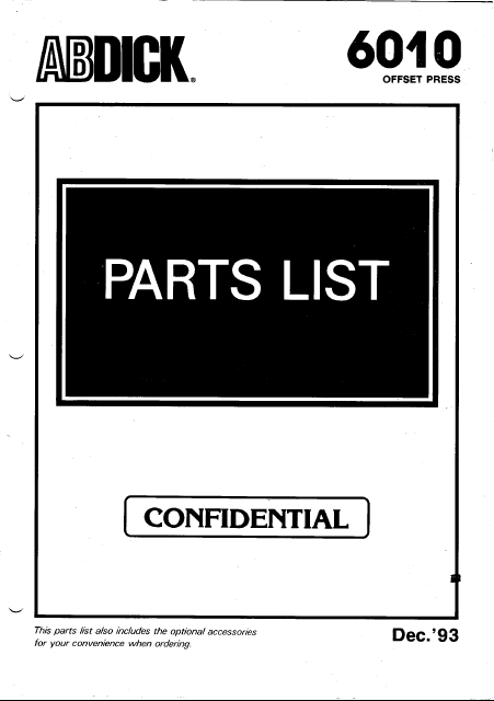 Baixar AB DICK 6010 Lista de peças Inglês (199 Pages) 59.90 EUR