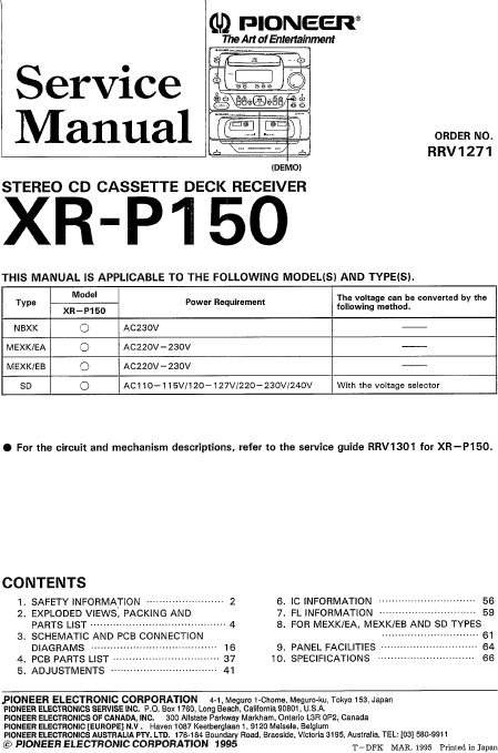 Download PIONEER XR-P150 Service Manual English (44 Pages) 15.90 EUR