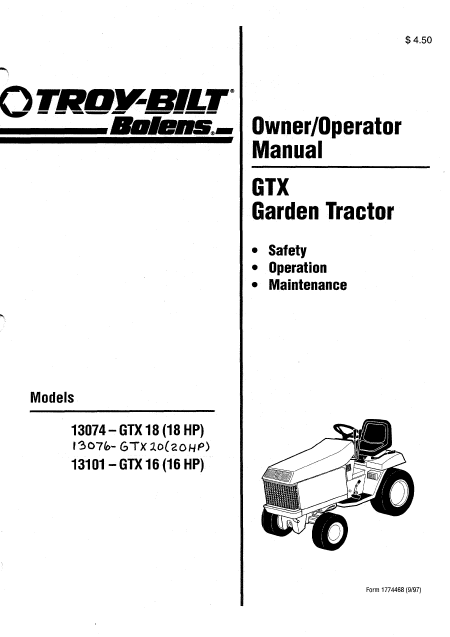 BOLENS 13101 - GTX 16 (16 HP) - 1997 Anleitung Englisch