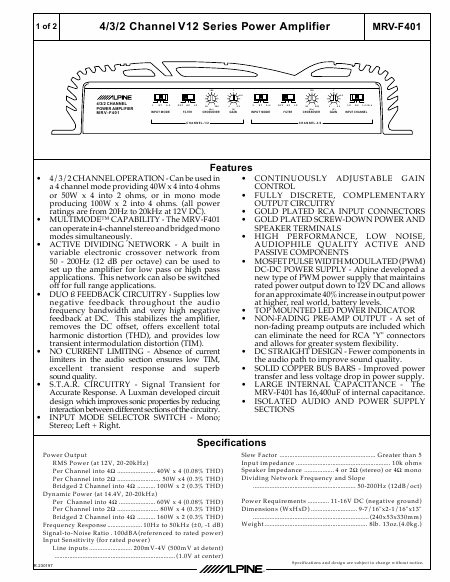 Baixar ALPINE MRV-F401 Manual de Instalação Inglês (2 Pages) 12.90 EUR