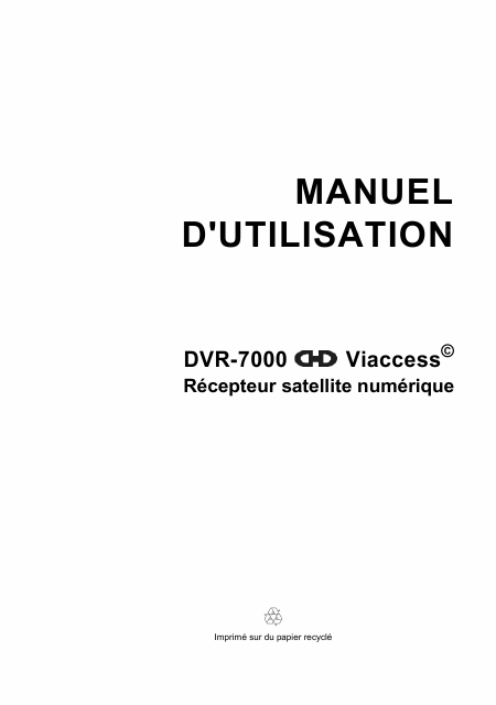 Telecharger ECHOSTAR DVR-7000 HDD Viaccess Mode emploi Français (106 Pages) 15.90 EUR