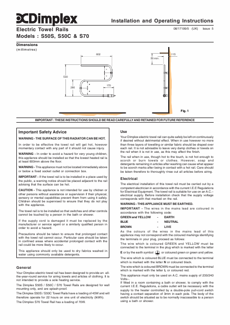 DIMPLEX S70 Istruzione Inglese