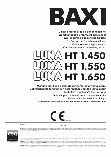 BAXI LUNA HT 1.550 Guía del usuario Alemán