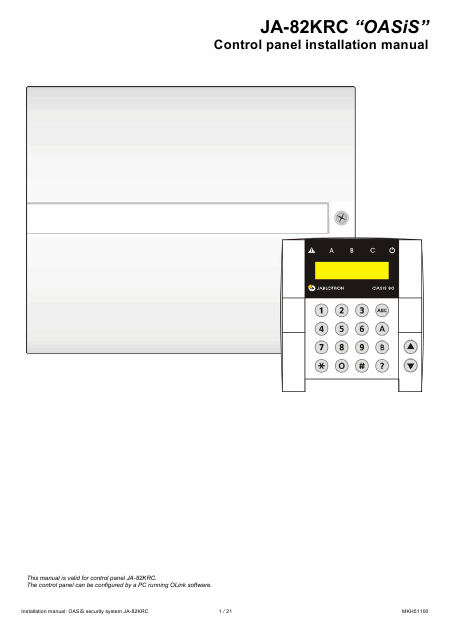 Telecharger JABLOTRON JA-82KRC Manuel installation Anglais (21 Pages) 12.90 EUR