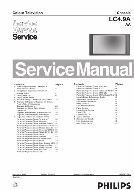 Telecharger PHILIPS LC4.9A AA Manuel de service Espagnol (90 Pages) 39.90 EUR