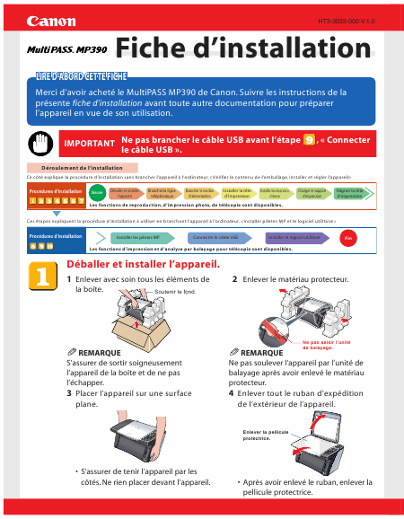 Download CANON MP390 Installation Manual French (8 Pages) 12.90 EUR