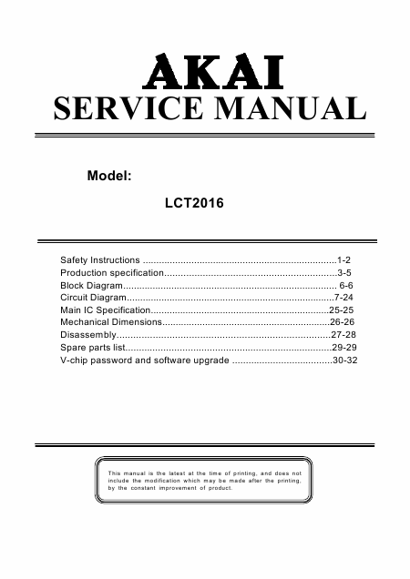 Baixar AKAI LCT2016 Manual de serviço Inglês (33 Pages) 15.90 EUR