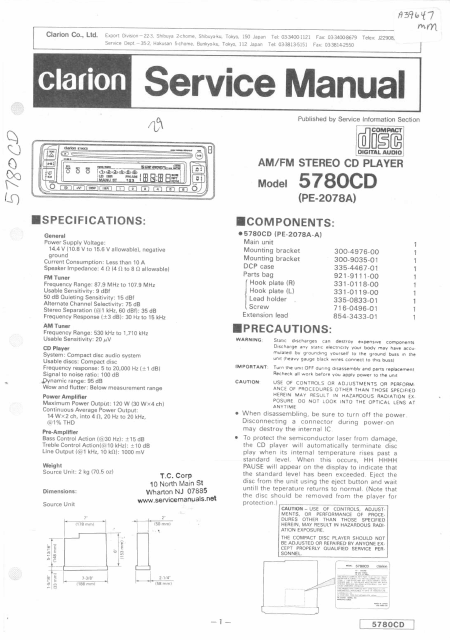 Download CLARION 5780CD Service Manual English (25 Pages) 39.90 EUR