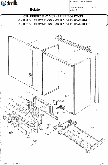 DEVILLE Helios Excel MX B 23 VE Lista parti di ricambio Francese