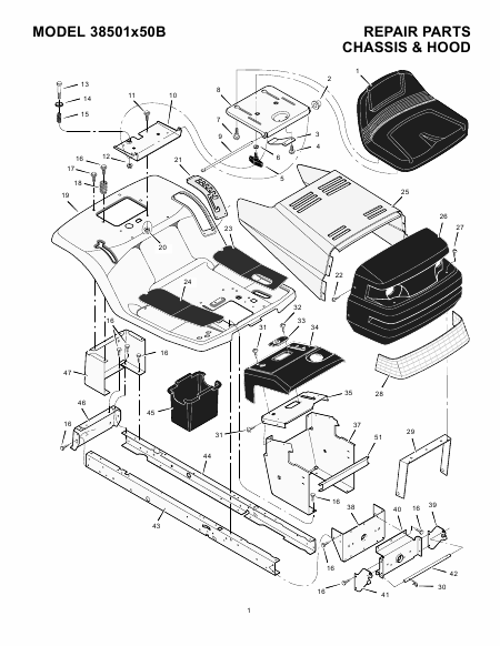 MURRAY 38501x50B Liste pieces detachees Anglais