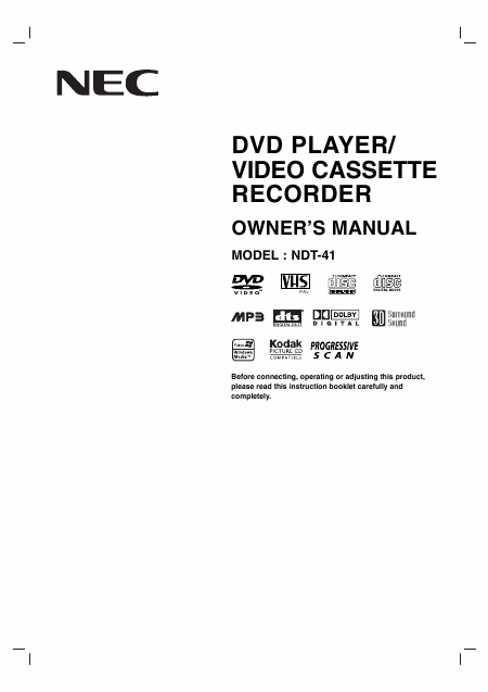 NEC NDT-41 (NDT41) Mode emploi Anglais