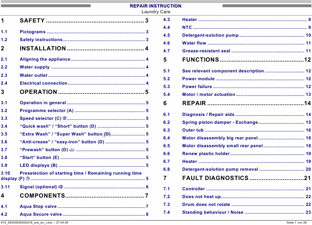 Download BOSCH WFO286. Service Manual English (28 Pages) 39.90 EUR