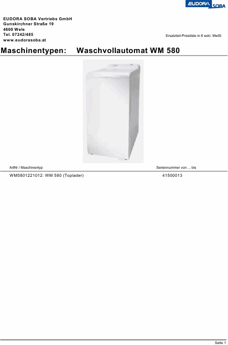 Baixar EUDORA WM 580 Manual de serviço Alemão (13 Pages) 15.90 EUR