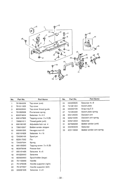 JANOME 4123 My Excel Liste pieces detachees Anglais
