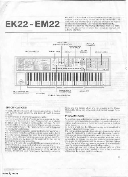ELKA EK22 Instruções Inglês
