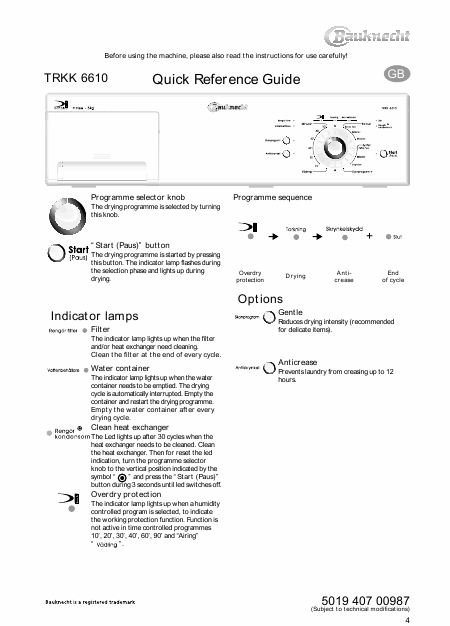 Telecharger BAUKNECHT TRKK 6610 Mode emploi Anglais (13 Pages) 12.90 EUR