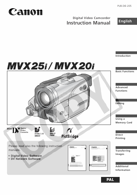 Download CANON MVX25i Users Guide English (164 Pages) 12.90 EUR