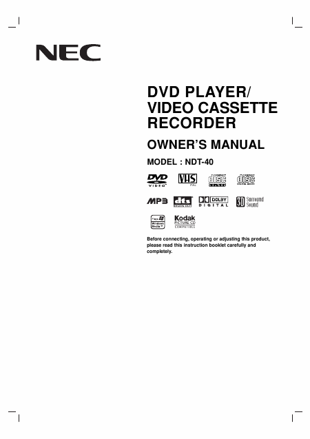 Telecharger NEC NDT-40 (NDT40) Mode emploi Anglais (39 Pages) 39.90 EUR