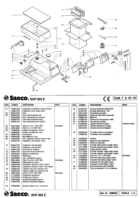 SAECO SUP 002E Lista de piezas de repuesto Italiano