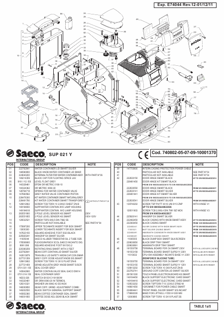 Download SAECO SUP 021 Y Ersatzteile Englisch (8 Seiten) 15.90 EUR