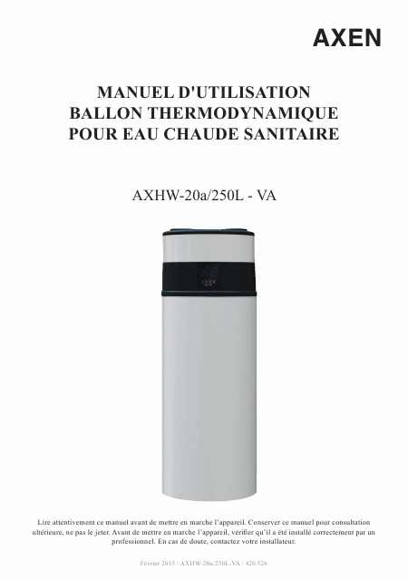 AXEN AXWH-20a / 250 L Installationsanweisungen Französisch