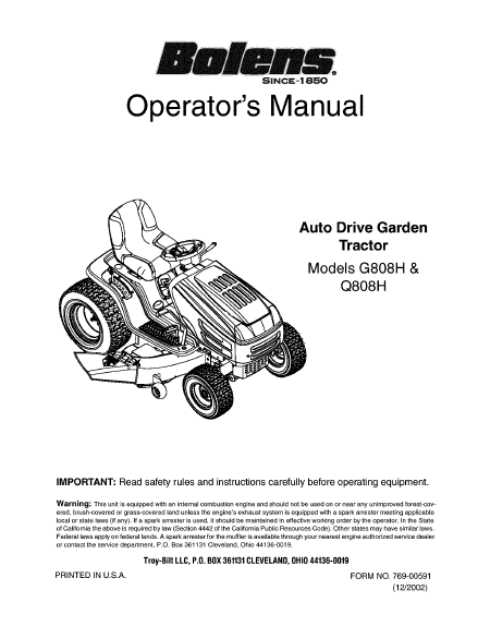 Download BOLENS Q808H Anleitung Englisch (40 Seiten) 15.90 EUR