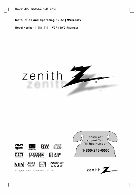 Scaricare ZENITH ZRY-316 Istruzione Inglese (0 Pagine) 12.90 EUR