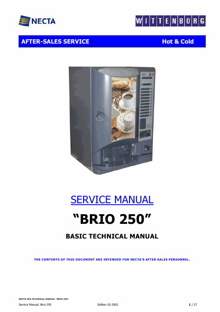 Telecharger NECTA Brio 250 Manuel de service Anglais (27 Pages) 15.90 EUR