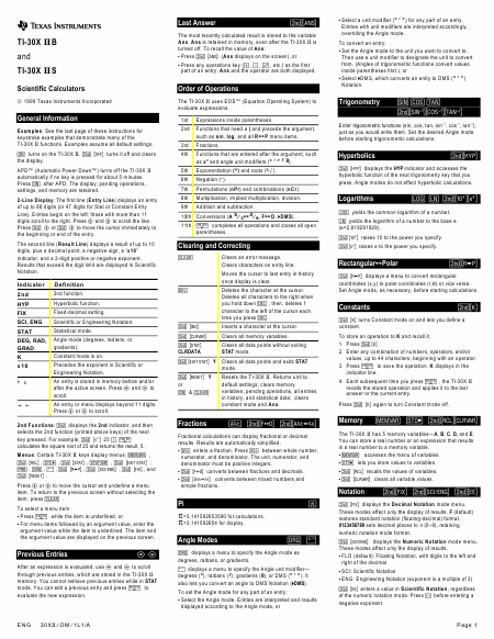 TEXAS INTRUMENTS TI-30X IIB / TI-30X IIS Instruções Inglês