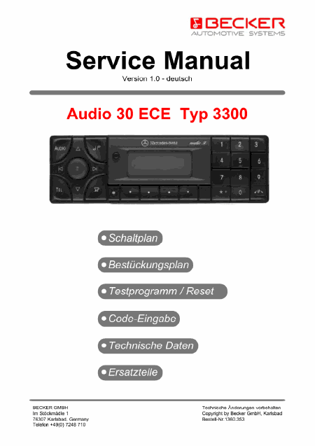 Download BECKER Sound 30 ECE Typ 3300 Serviceanleitung Deutsch (49 Seiten) 15.90 EUR