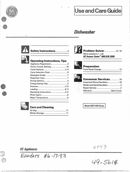 GE (GENERAL ELECTRIC) GSD1400T Istruzione Inglese