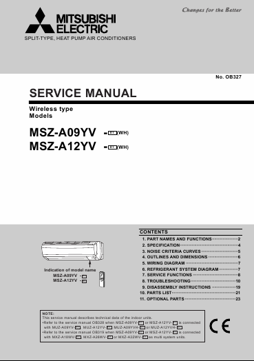 Telecharger MITSUBISHI MSZ-A12YV Manuel de service Anglais (64 Pages) 39.90 EUR